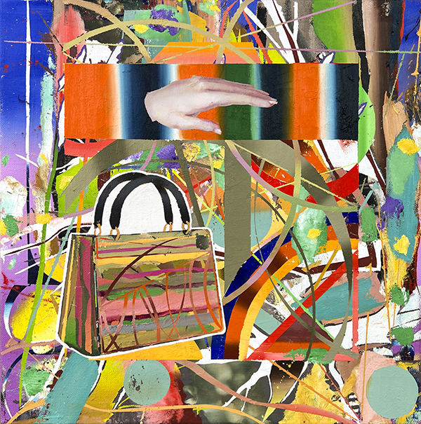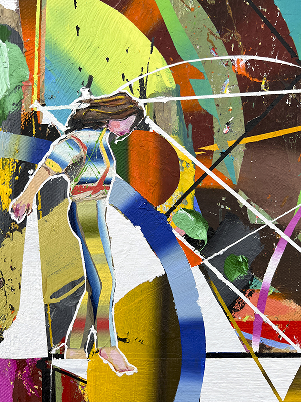 • Spatial Mobility 2 Oil on Artist’s Own Textile Design, 20″ x 20″, 2023