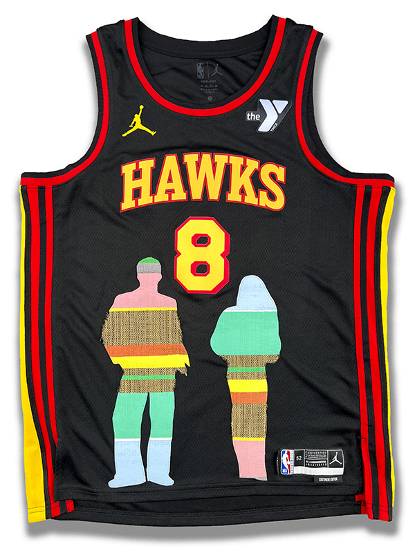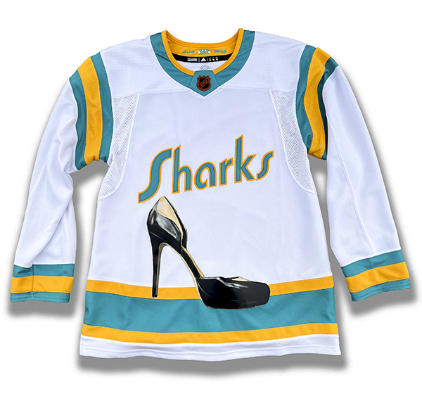 • Negative Space Oil on Canvas Applique on Upcycled San Jose Sharks Jersey, Size 50, 2025
